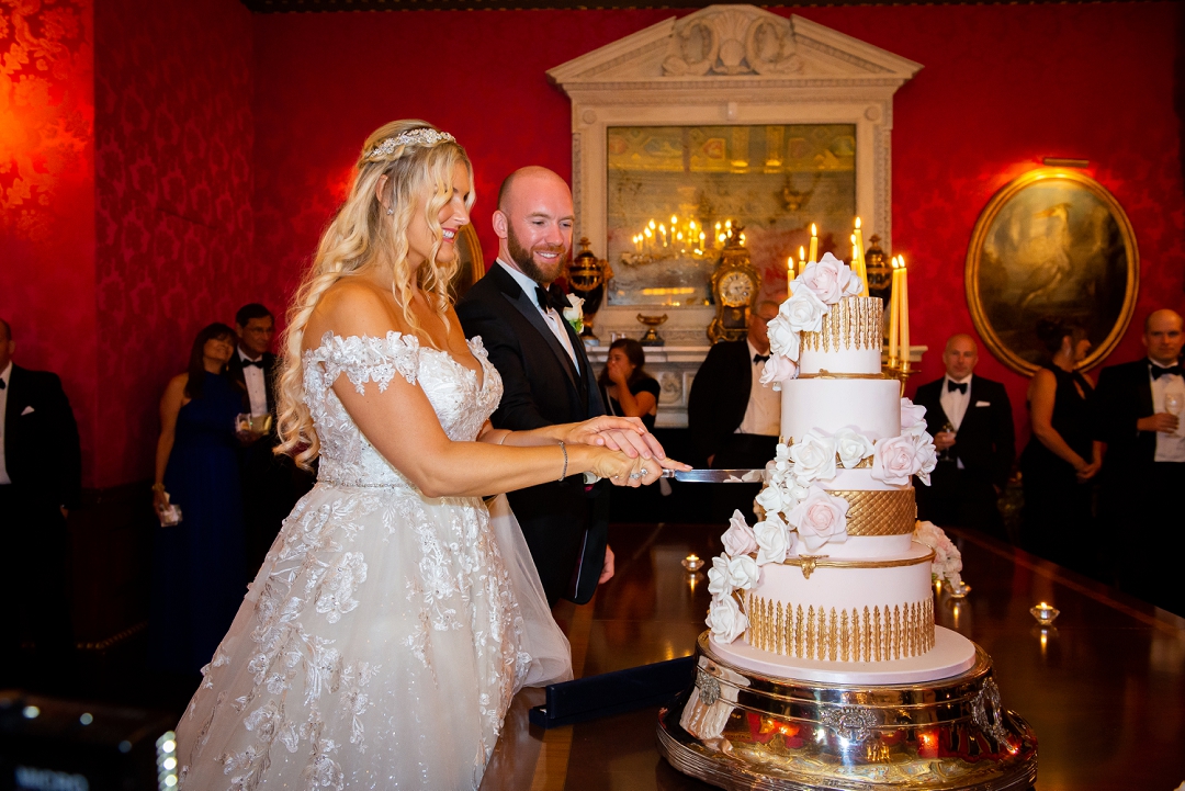 After dinner, while we turned the dining room around for the party, a close-up magician, Maddox via Sternberg Clarke, entertained guests. He got the evening celebrations started with a great trick involving the couple and a Rubik’s Cube. We then had speeches and the cutting of the fabulous cake by The Abigail Bloom Cake Company in the Red Room.